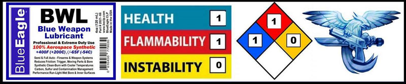 - BlueEagle BWL- Proprietary Lubricant product. Formulated with advanced Bio Base and aerospace / synthetic chemistry. Universal for gun barrel bore & mechanical parts with aerospace lubricant provides; high temperature durability, cold /sub-zero operation temperatures, reduced friction & long-lasting features. Stay-ability upon surfaces with cleaner weapon performance (greatly reducing carbon, nitrite, residue particles & micro-dirt attraction). Increases overall component life cycles. Hot weather durability. NEEDS FOR A HI- PERFORMANCE AEROSPACE DESIGN FIREARM LUBE.